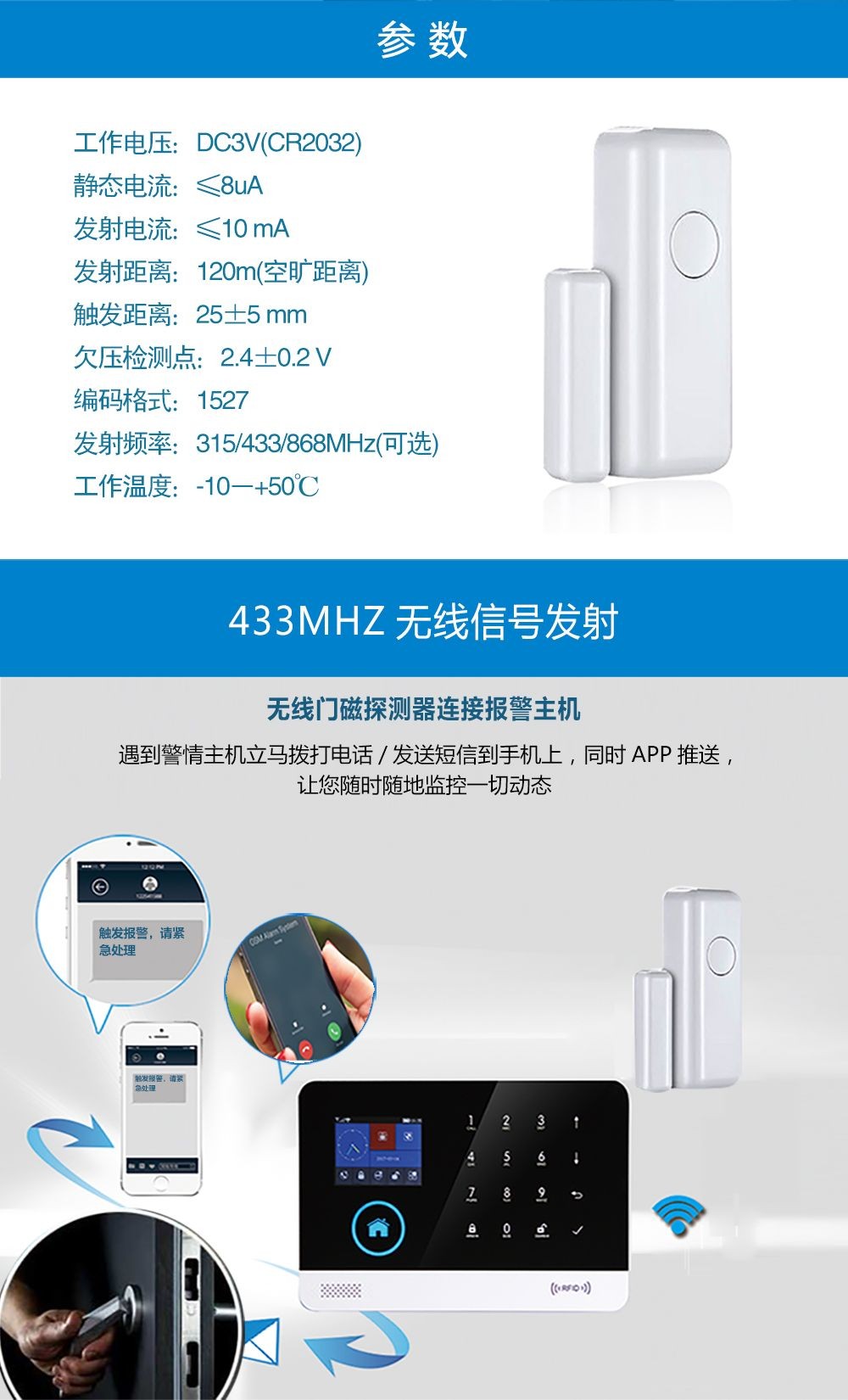 感应门窗开合,动作距离 10mm,无线发射距离可达 80m