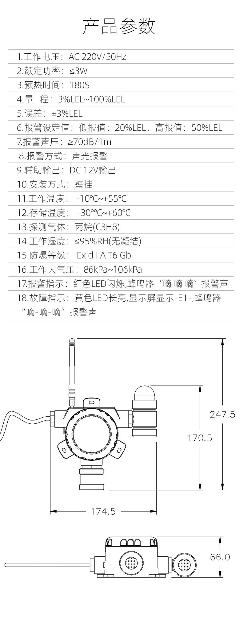 故障自动检测指示;可探测丙烷