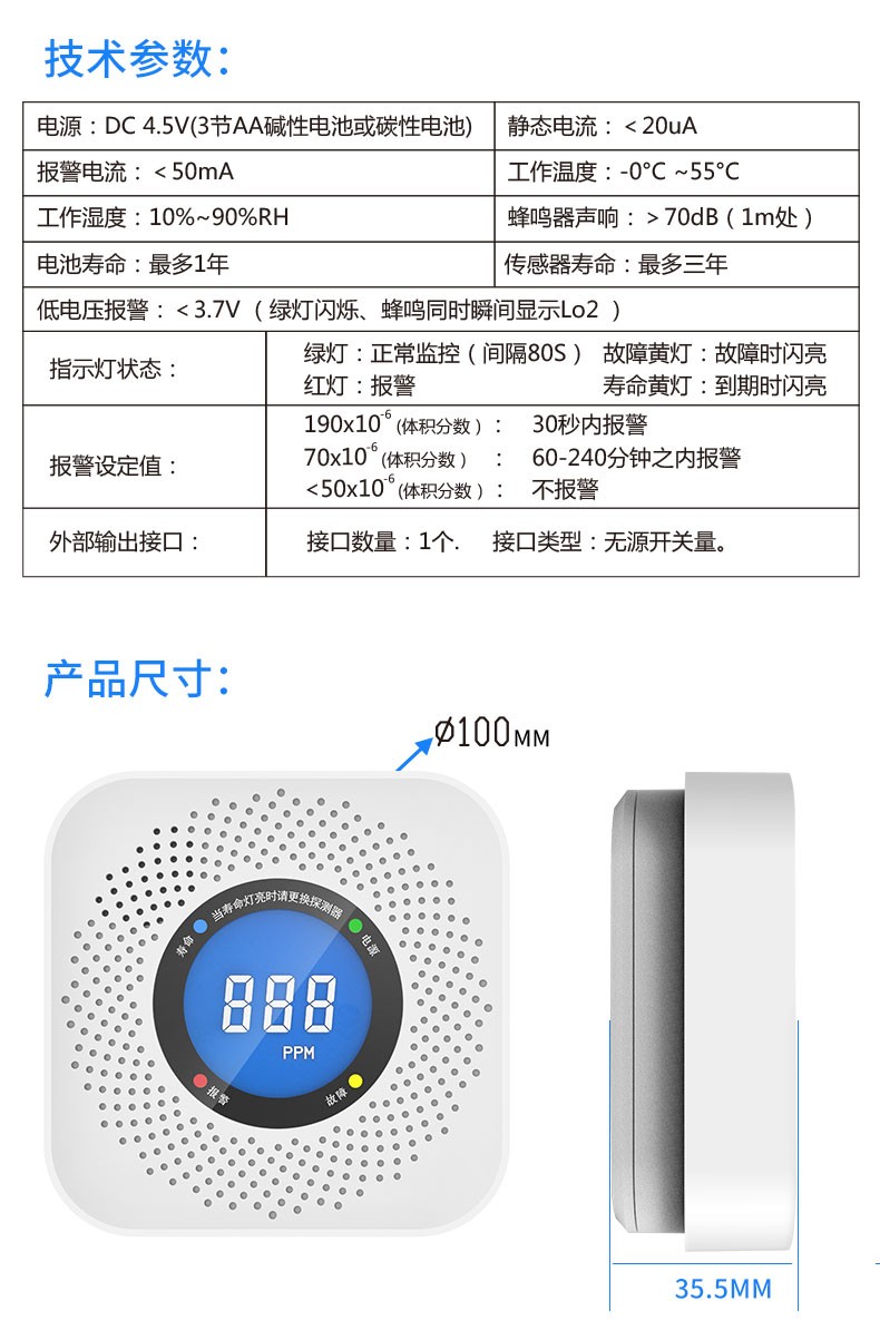 报警电流:<50mA