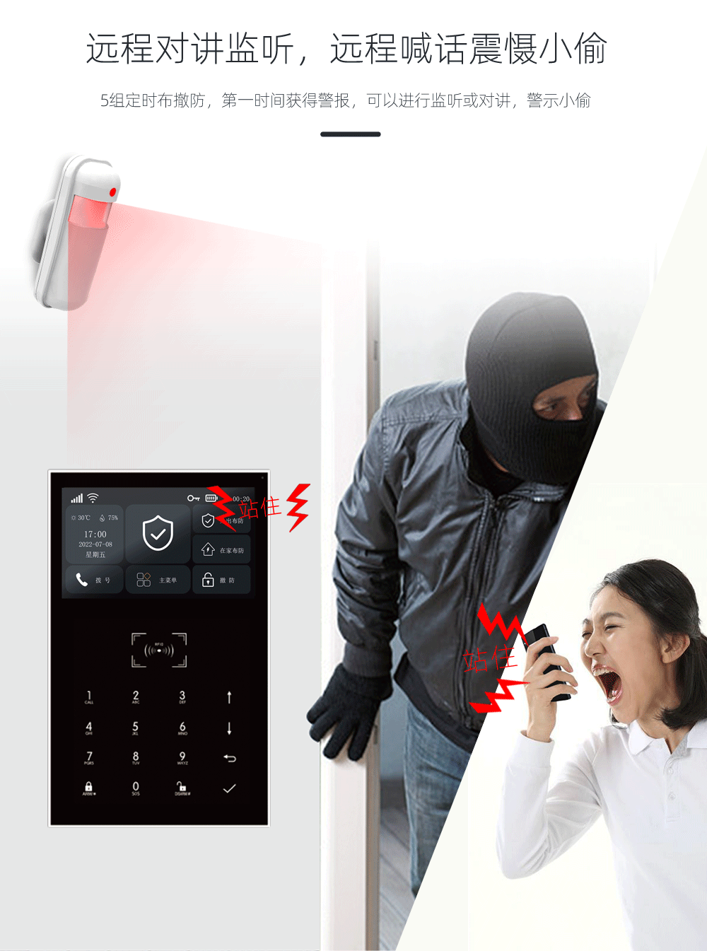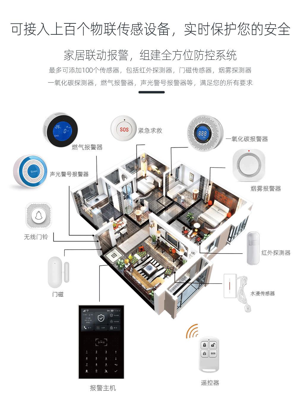 内置无线发射功能可配置无线警号和控制智能家电;