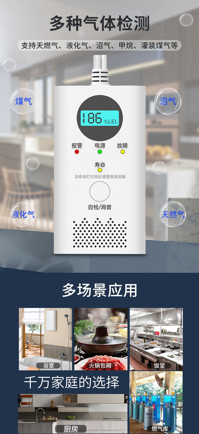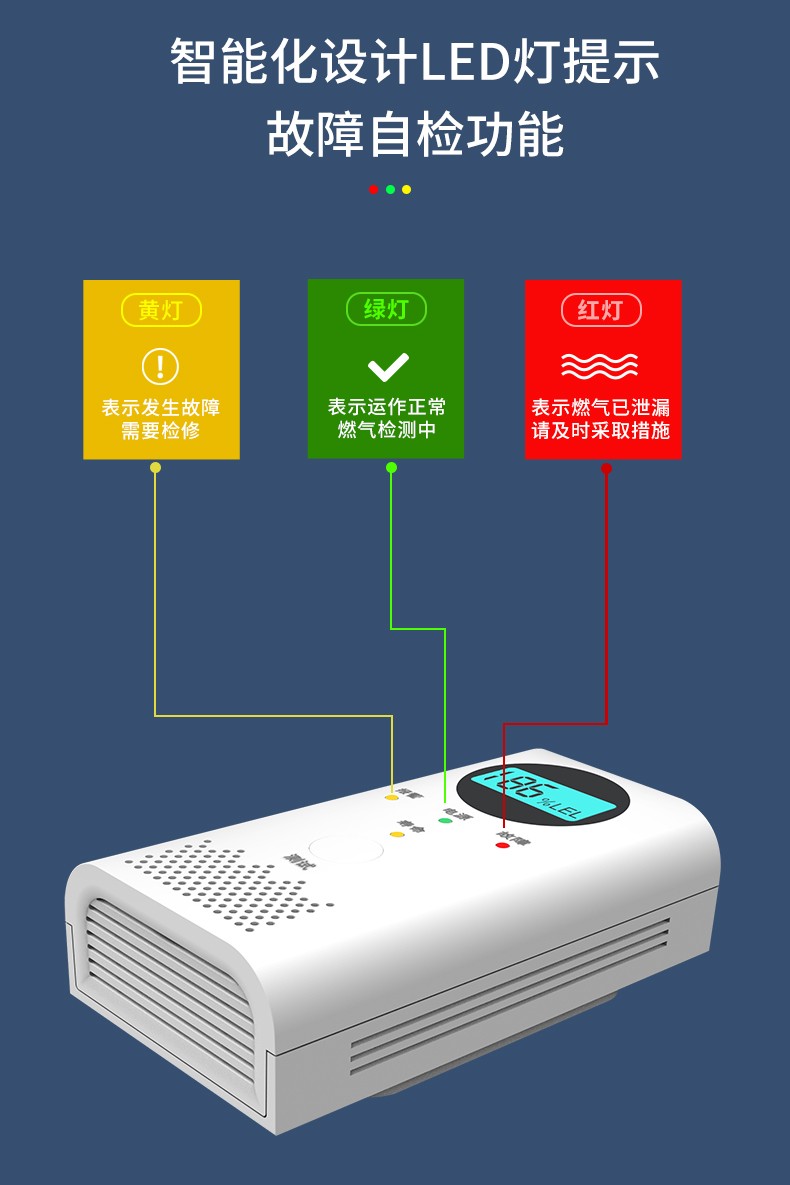 LCD实时显示并上报燃气浓度状态;