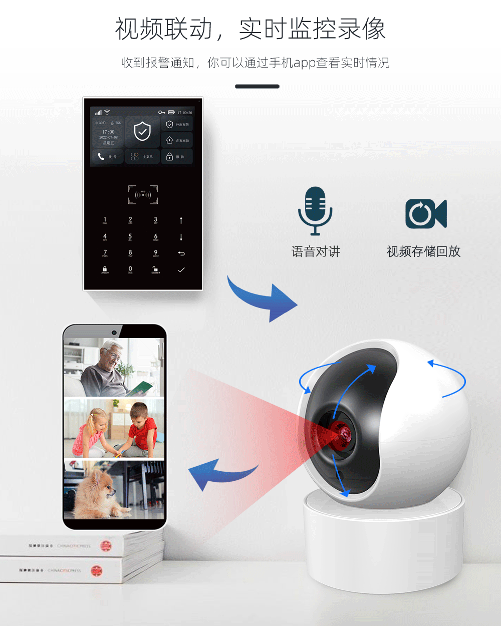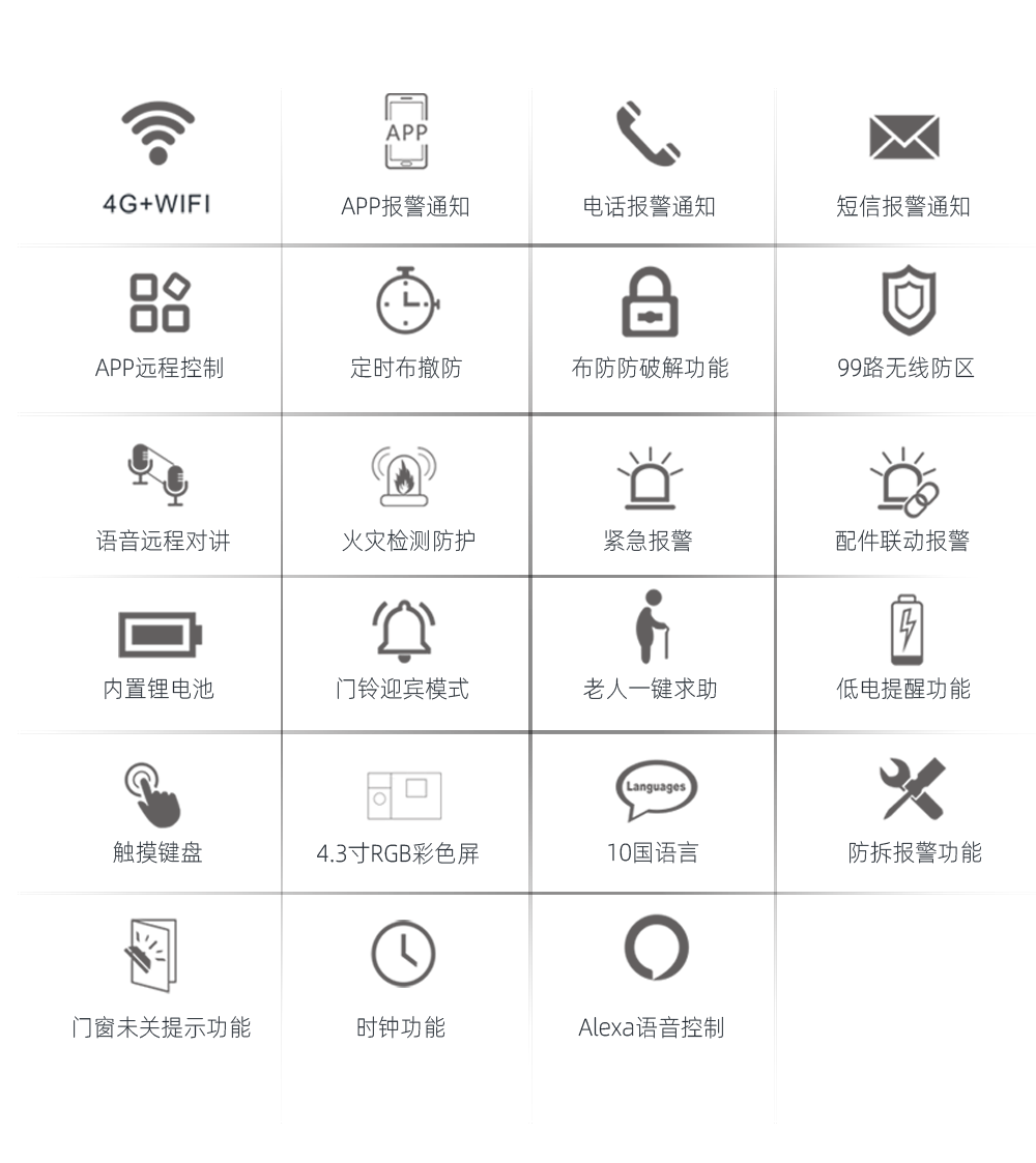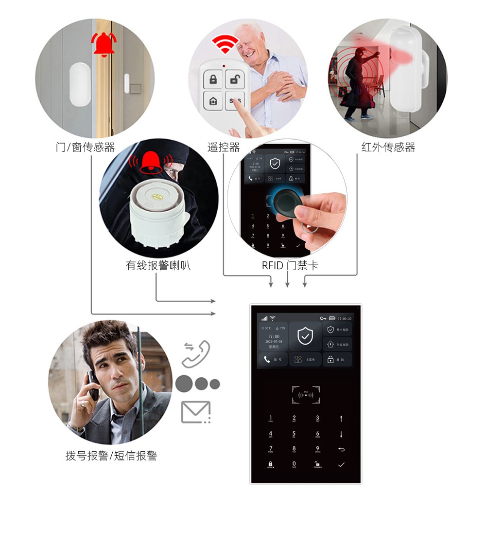 双网模式WIFI+GSM/4G,支持app推送、短信推送和语音监听等多通道报警方式;