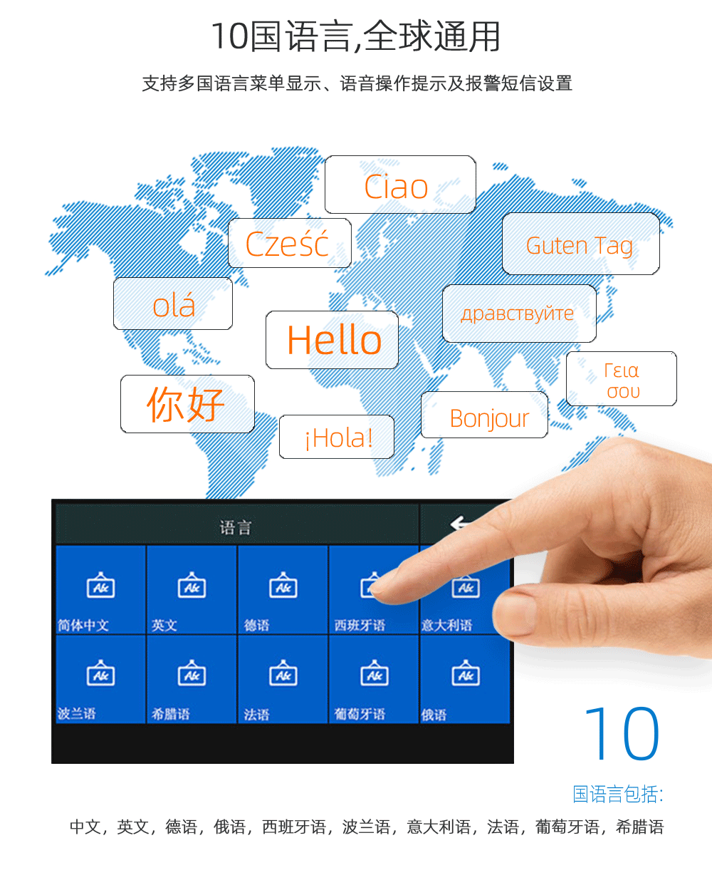 内置10国语言,可自由切换;